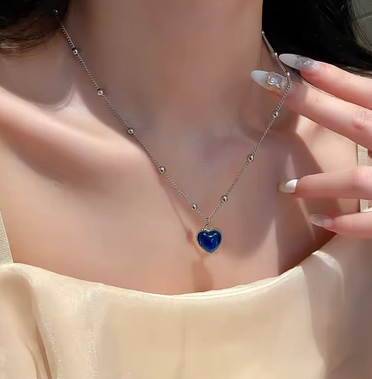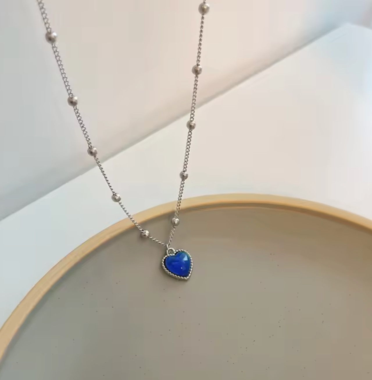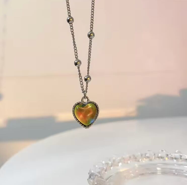 肌の温度によって色がブルー、グリーン、ピンクと変化する温感ハートペンダント。気持ちが高まると色が変わる、ちょっと特別なネックレスは気になる人への贈り物としても♡