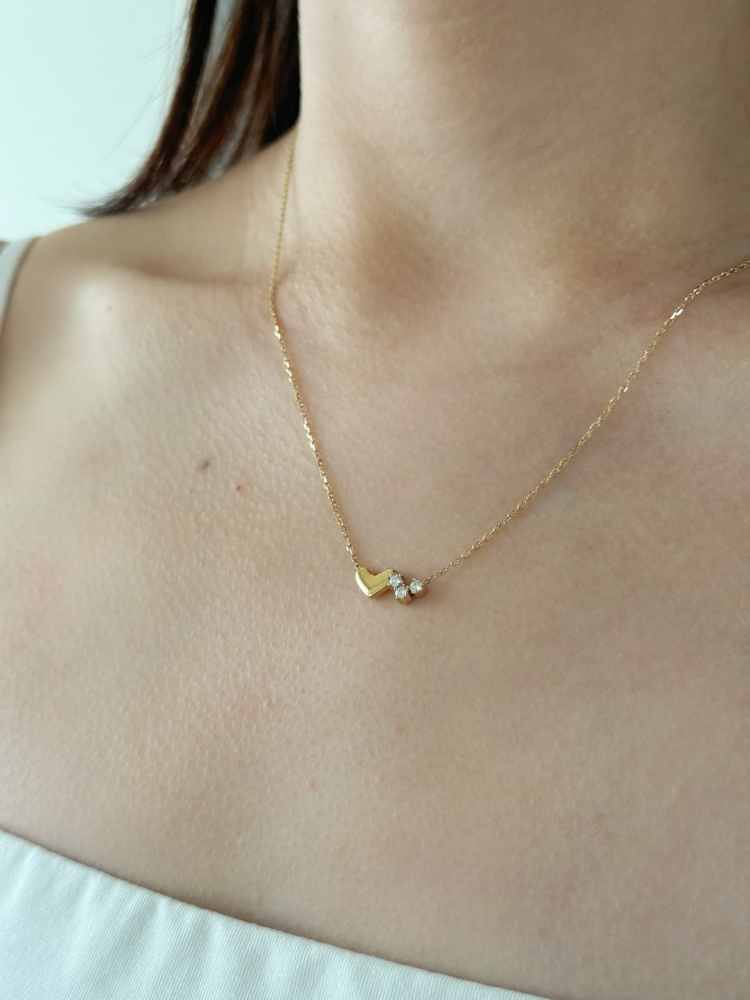 上質なジルコニアがキラキラと輝くハートネックレス。小ぶりながら存在感のあるネックレスで、パーティールックからデイリーユースまで幅広くお使い頂けます。