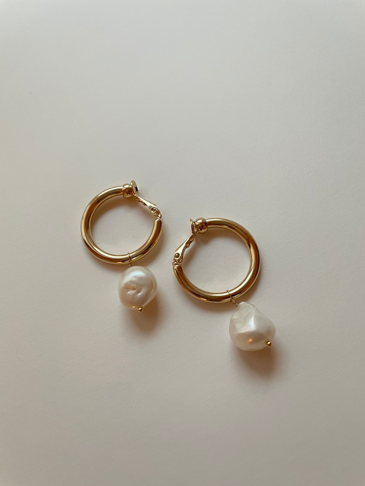 淡水バロックパールを使用したチャンキーフープイヤリング。