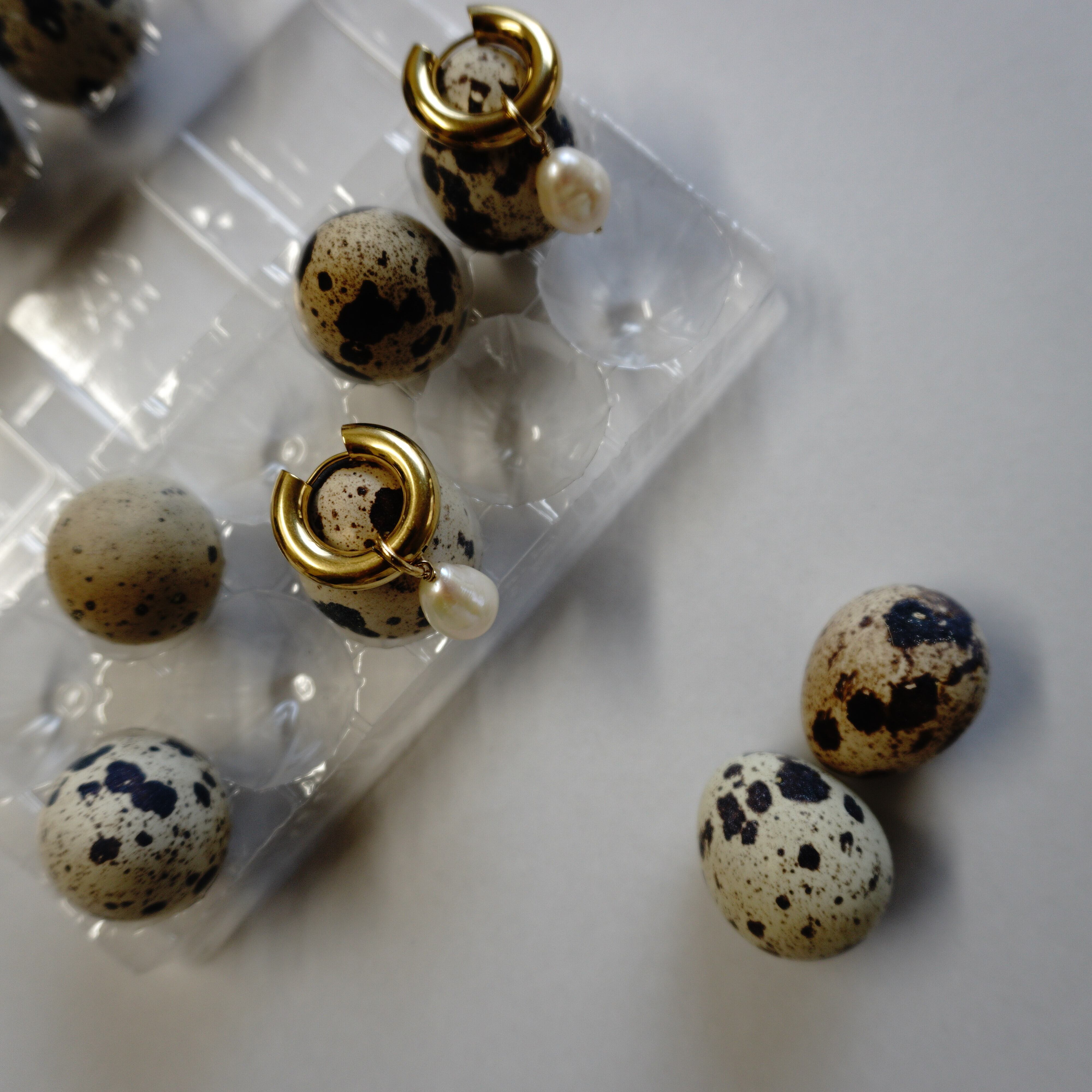 キャッチレスのゴールフープピアスに上質な淡水パールを添えました。
