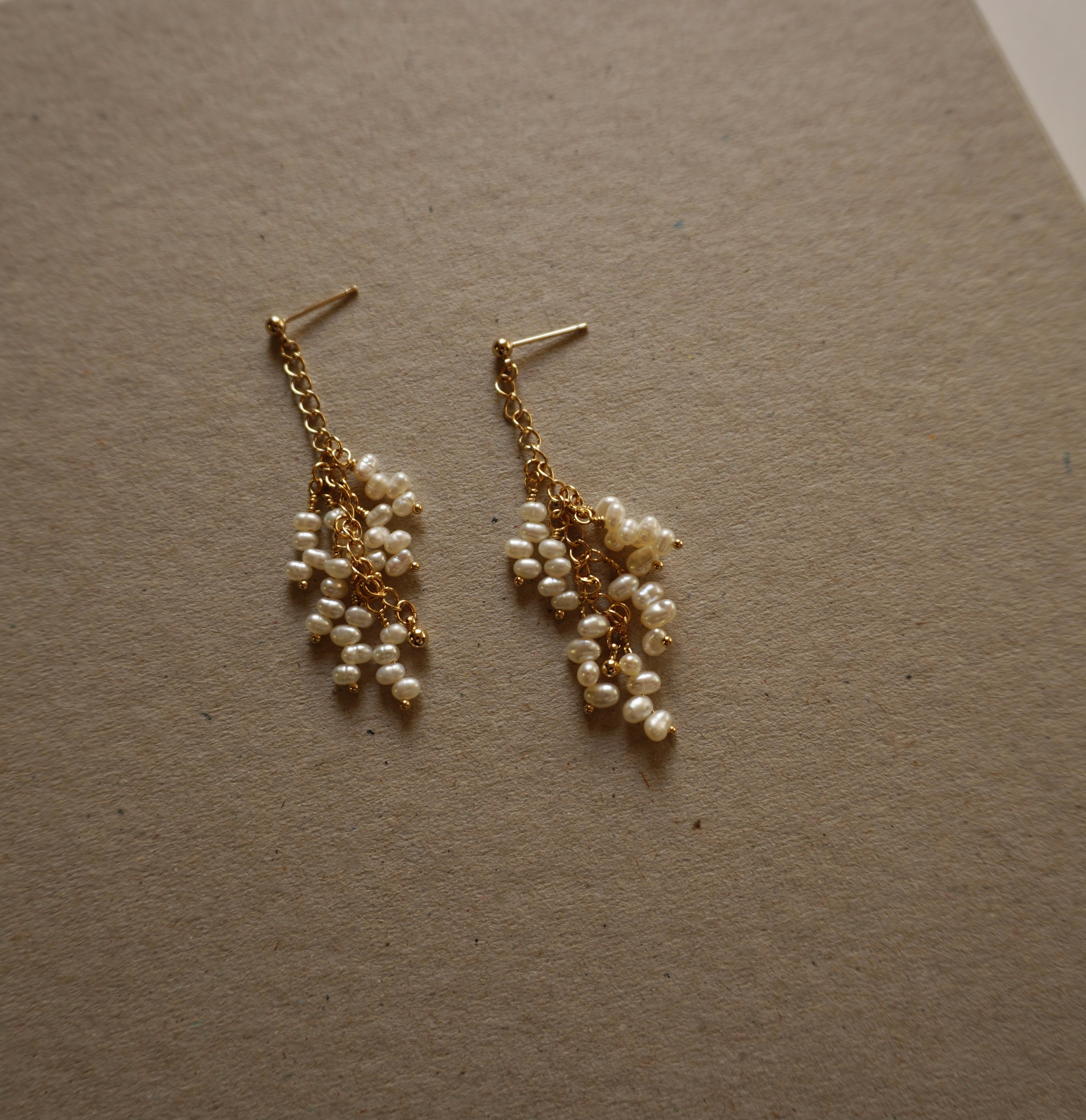 バロックパールとゴールドのコントラストが可憐な女性らしさを引き出してくれる逸品。歩く度に上品に揺れるロングピアスです。