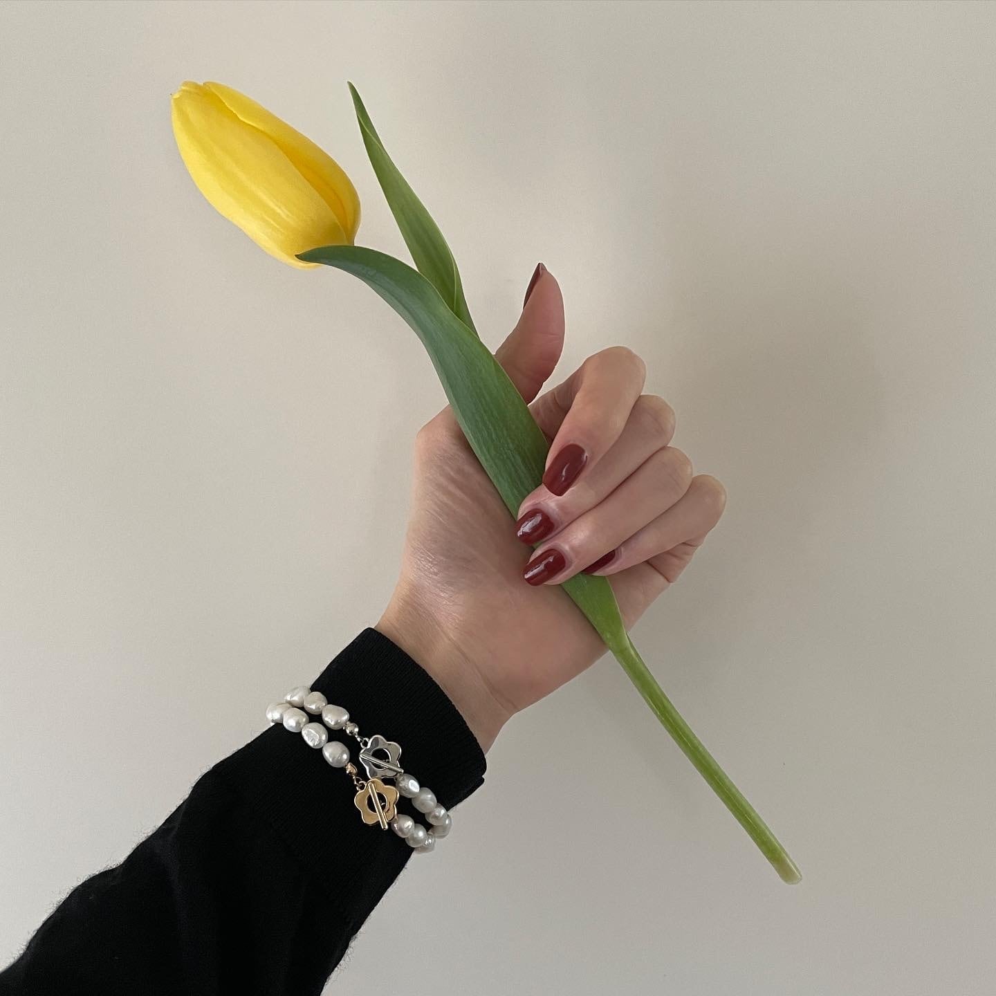 一つ一つ形の異なる淡水バロックパールのブレスレット。お花モチーフのチャームがポイントです。