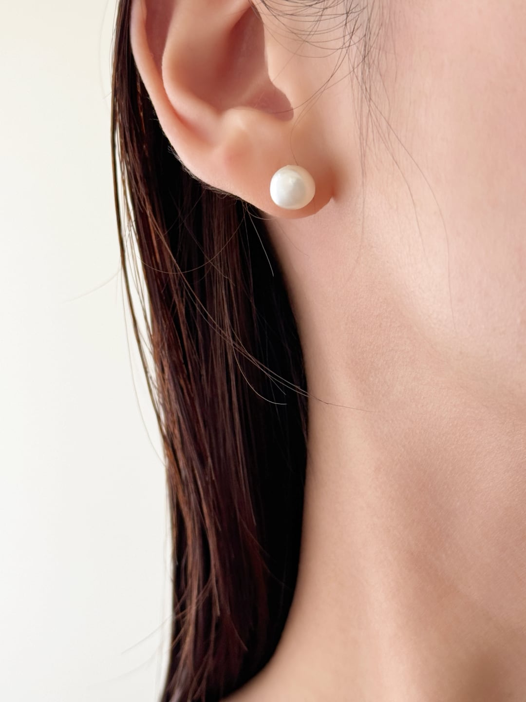 小粒の1粒パールピアス。いびつさが美しい、上質な輝きを放つ淡水バロックパールを1粒ずつ丁寧にセレクトしました。
