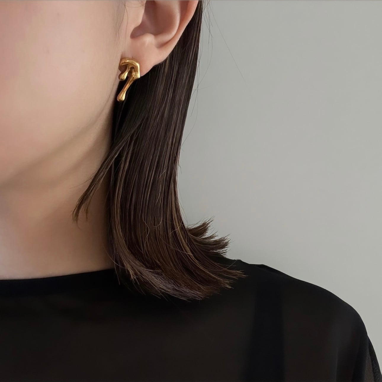 シンプルでエレガントなデザインが魅力のステンレススチールピアス Elliott。ゴールドの輝きが耳元を華やかに演出します。