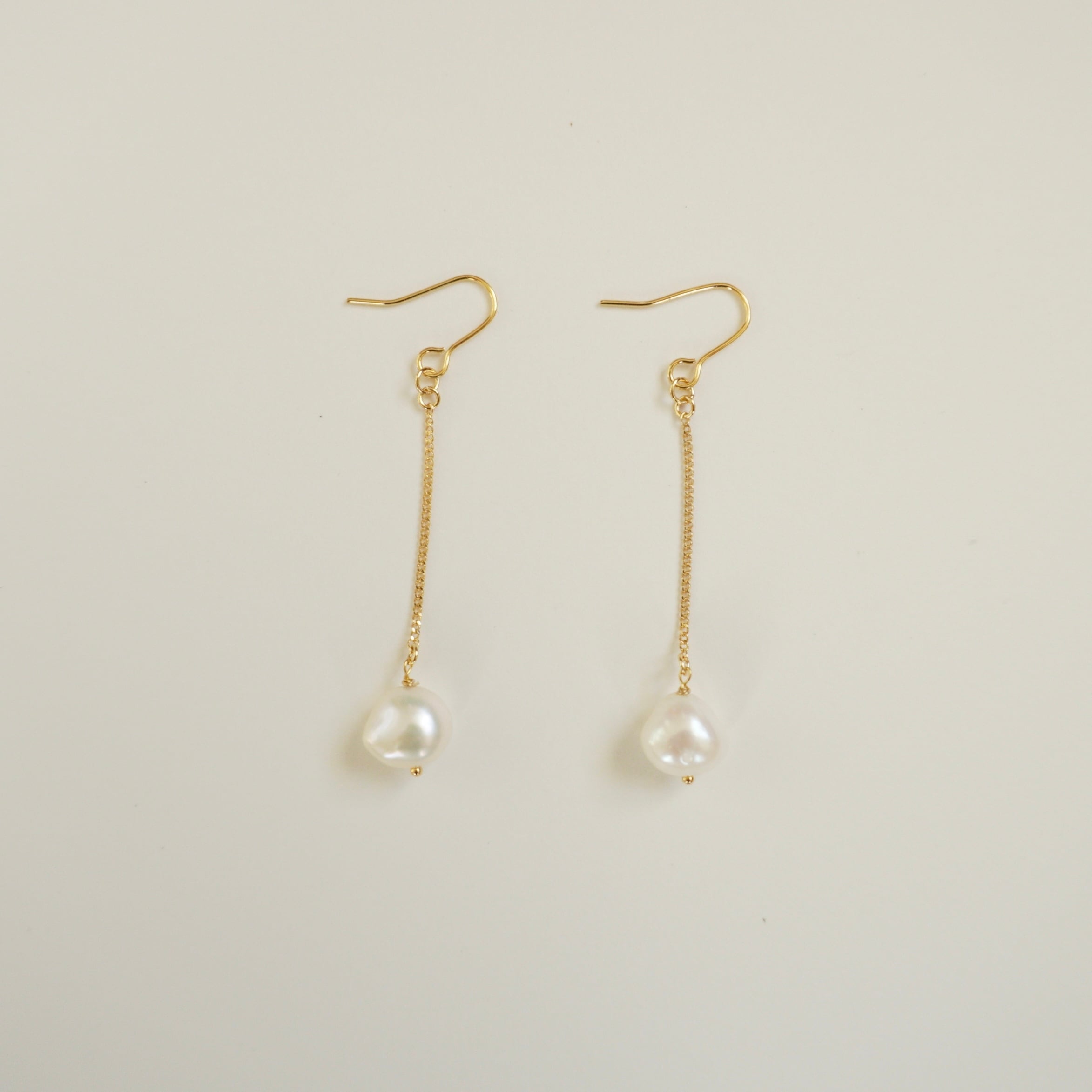 エレガントで華やかな揺れるパールチェーンピアスで、あなただけの特別な輝きを演出しましょう。