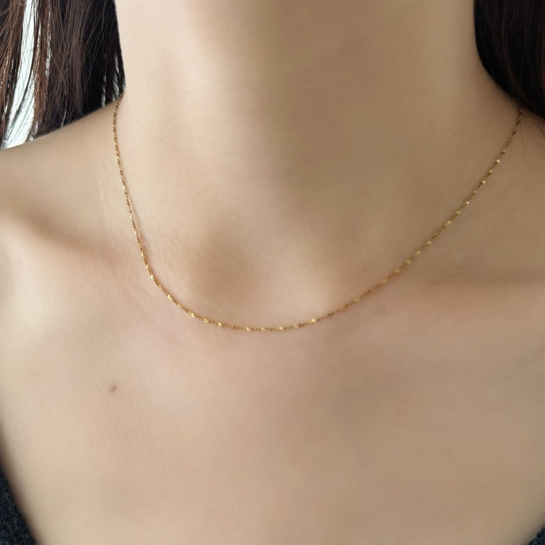 シンプルでありながら華やかな印象を与える、金属アレルギー対応の煌めくチェーンネックレスです。